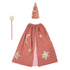 Capa de bruja de terciopelo rosado con sombrero y varita